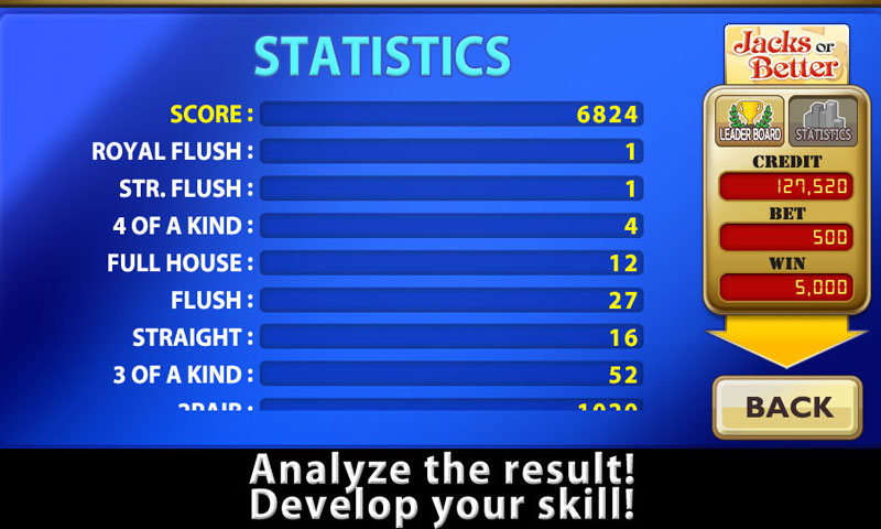 • Check Statistics - Total Score, the Number per Match, the Number of Game, Max Winnings