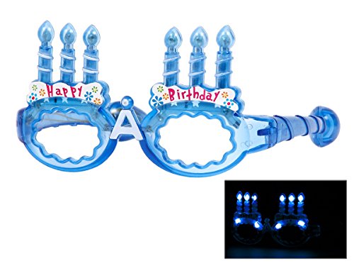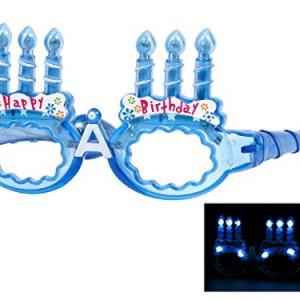 Lunettes lumineuses 'happy birthday' avec des bougies à LED. Bouton on/off: Fonctions marche continue ou clignotante rapide ou lent. Une super idée pour vos soirées d'anniversaire.. Fonctionne avec 3 piles ag03 fournies. Veuillez svp enlever la protection de pille avant usage.